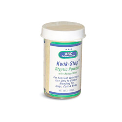 爪のケガはたとえ小さなものでもとてもペットにとってはとても痛く、時にはパニックになってしまう場合もあり、患部を触ろうとすると怒って噛みついてくる可能性がありますが、ペットを落ち着かせ、応急処置を行ってください。出血した際に、清潔なガーゼなどにクイックストップをちょっと付けて、出血部位にあててしっかりと2〜3分圧迫止血を行います。