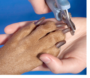 うちの犬はどういうわけか、前足を触るのを子供の頃からいやがって爪もきらしてくれませんでしたが、16歳になってからは、抵抗する気力がないのか以前より抵抗をしません。スヤスヤと寝ているときを見計らって、爪切りでのびた爪の処理をしていますが、少しづつ切っているので、幸い出血を起こす事もなく行なえています。